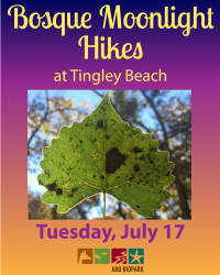 You’ll travel to the bosque to look for bats, hoot for owls and search for other nocturnal animals. Bring your flashlight and meet at the Tingley Beach Café facing the fishing ponds.