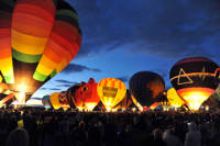 The events now known as balloon glows were invented in Albuquerque in 1979, when local pilots inflated balloons on Christmas Eve night as a thank you to local residents. The sight of balloons lit from within at night like giant holiday ornaments is breathtaking, and glow events are now held all over the world. Balloon Fiesta launched its Balloon Glow, the world's biggest, in 1987. Fiesta Glow all burns when all the balloons fire their burners and light up at the same time are perhaps the most spectacular single moment in all of Balloon Fiesta. The Balloon Glows followed by New Mexico's most spectacular fireworks displays - are now among Balloon Fiesta's most popular events.