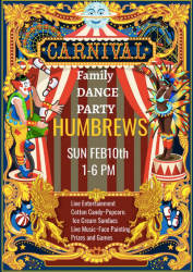 Hey kids bring your parents down to Humbrews and join us for an afternoon at our Family Fun Carnival with Face painting, games, prizes, organic hot dogs, ice cream, cotton candy, entertainment and more.