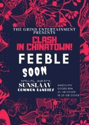 The Grind Entertainment presents Clash in Chinatown! Live performances by skate punks Feeble, fast hardcore group Soon, psychedelic rock band Sunslaav and art punks Common Dandies