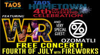 The Town of Taos Facilities and Events Department, Taos Volunteer Fire Department and AMP Concerts presents WAR and Fireworks at Kit Carson Park.
