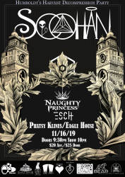 Humboldt's Harvest Decompression Party Featuring Soohan, Naughty Princess & Esch. Located at the Historic Eagle House & Phatys Klines in Old Town Eureka. The seasonal celebration of Humboldt's Harvest with live music, drinks, dancing & mingling!!