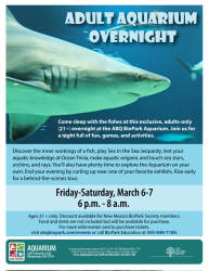 This overnight is for adults only - participants must be 21 and over. Call BioPark Education at (505) 848-7180 for more information.