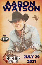 Aaron Watson * Lucky Mays Thursday, July 29, 2021 Doors 7pm | Show 8pm Sunshine Theater - Downtown ABQ NM all ages Advance tickets - $25 plus service charge