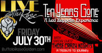 Ten Years Gone – A Led Zeppelin Tribute brings all the sonic mastery and energy to authentically recreate the amazingly memorable Led Zeppelin experience. By combining the best live performance and studio album sound, Ten Years Gone gives music fans the ultimate tribute show to one of the greatest rock bands there ever was. Faithful recreations of equipment, style, and sound brings fans back to when the Hammer of the Gods was held by Led Zeppelin.