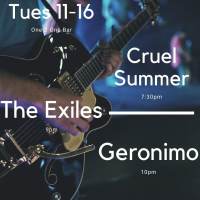 Cruel Summer- https://www.facebook.com/cruelsummertx The Exiles- https://www.facebook.com/theexilesrock Geronimo- https://www.facebook.com/GeronimoATX