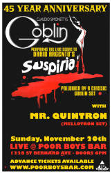 Composer Claudio Simonetti has written and recorded some of the most influential soundtracks in horror, including Dawn of the Dead, Demons, Deep Red, Tenebre, and countless others, with his seminal work still informing the genre to this day. This year, Simonetti's Goblin celebrates the 45th Anniversary of Dario Argento's iconic picture, Suspiria, with a live performance of the score set to a screening of the film. Following the finale of the cult classic, the collective will return after a brief intermission to deliver a set of quintessential Goblin material alongside clips from the songs' cinematic counterparts.