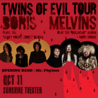 * Boris * Melvins * Mr Phylzzz * Twins of Evil Tour Wednesday, October 11, 2023 Doors 7pm | Show 8pm Sunshine Theater ABQ NM All Ages Advance tickets - $27 + service charge