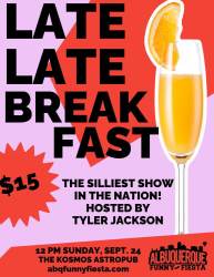 Late Late Breakfast, hosted by Tyler Jackson is a fast-paced, mixed-format stand-up show featuring comedians facing randomized themed challenges, that could be anything from having an impromptu puppet show or pie fight, to giving a guided tour in a trolley car involving the entire audience or competing in an egg race. It's a wildly different and chaotic experience, held together by solid stand-up comedy!