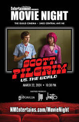 Join New Mexico Entertainment for our screening of Scott Pilgrim vs. The World. Earlybird presale tickets have the chance to win door prizes from local businesses and organizations around town and guaranteed seating including Bubonicon and artists Jon Sanchez and Jeremy Montoya. ONLY 59 PRESALE TICKETS ARE AVAILABLE!