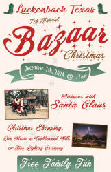 Folks! Luckenbach Texas is holding its 7th annual "Bazaar Christmas" on December 7th, 2024