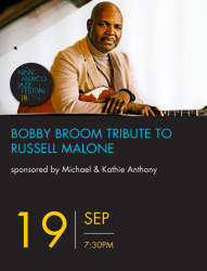 The Bobby Broom Russell Malone Tribute will also perform in Santa Fe on Friday, September 20, 7:30pm at UNIT “B” @ Chocolate Maven. 821 West San Mateo Road, Santa Fe. For info: santafemusiccollective.org