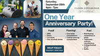 Floor Coverings International is excited to invite you to our 1-Year Anniversary Party! Join us Saturday, September 28th from 4-7 PM for a evening of unforgettable fun, food, drinks and community!