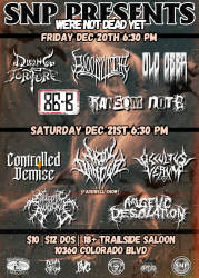 SNP Presents Day 1 - We're Not Dead Yet Divine Torture Ransom Note Blood of Lilith Old Deer 86-B 18+ / $10 / $12 / 630pm
