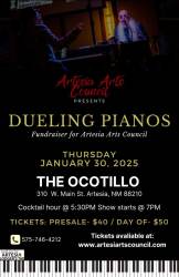 Get ready for a night of music, fun, and giving back! Join us on Thursday, January 30th for a spectacular Dueling Pianos show by the Killer Keyz! We will have light food and cocktails by Pecos Flavors. Cocktail hour begins at 5:30PM and the show starts at 7PM. This is an 18+ event