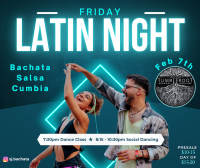 7:30PM We kick things off with a complimentary, all levels Bachata Dance Class taught by local dance instructors Joanie and Stephen. No partner or previous experience necessary. Newbies: Come learn the basics so you are ready to hit the dance floor after class. More experienced dancers: There’ll be some fun options mixed in for you as well!
