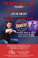 Ronnie McDowell charted a string of Top 10 Hit songs: “Older Women”, “You’re Gonna Ruin My Bad Reputation”, “Watchin Girls Go By”, “Personally”, “All Tied Up” and many more. Following the death of Elvis Presley, Ronnie charted “The King Is Gone” dazzling the world. Food available for purchase from the Bottling Plant Kitchen.