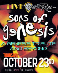 Experience an exclusive evening with Sons Of Genesis performing a full spectrum of Genesis Catalog ... featuring early Prog, Medleys, Deep Cuts and Greatest Hits.