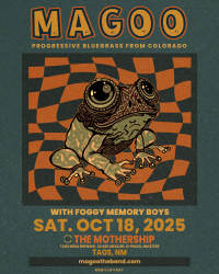 Magoo is a progressive bluegrass quartet based in Denver, CO, redefining the boundaries of traditional bluegrass with a fresh, contemporary approach. Known for their electrifying live performances, the band creates a unique experience that blends extended improvisations, intricate original arrangements, and tight three-part harmonies. Their foot-stomping grooves and energetic stage presence leave audiences both inspired and enthralled.