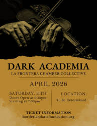 La Frontera Chamber Collective emerges from the shadows to unveil a night steeped in dark academia, a realm where music transcends time and space. April 2026 brings forth an auditory journey that melds classical rigor with contemporary edge, promising an evening where intellect and emotion collide. This isn't just a concert; it's an odyssey through the labyrinth of sound, designed to provoke thought and stir the soul. The venue, still shrouded in mystery but guaranteed to be a space of intimate, historic allure, will host this singular event. Doors swing open at 6:30pm, inviting patrons into a world where the past and present converse in whispers. The precise cost remains undisclosed, heightening the anticipation for what promises to be an experience worth every penny. As for age restrictions, the night is open to all who dare to delve into its scholarly depths. For those who crave more than just a performance, this event offers a treasure trove of hidden gems. Keep an eye out for exclusive giveaways and special guest appearances, adding layers to an already rich tapestry of sound and experience. To partake in this nocturnal adventure, visit borderlandartsfoundation.org for ticket details. Secure your place among the enlightened and prepare to be transported to a realm where music is both a teacher and a muse.